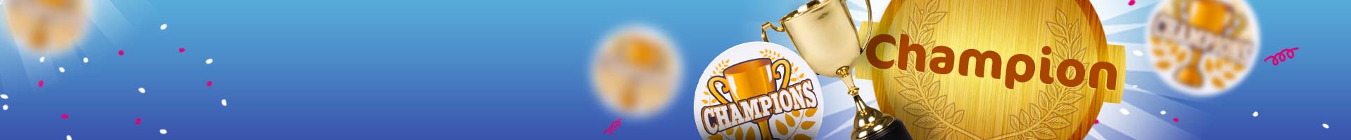Gebruik onze Champions banner van 74 bij 220 centimeter bijvoorbeeld om de platte kar mee te versieren tijdens een ereronde door het dorp. Tijdens deze viering moet natuurlijk iedereen kunnen zien dat er een fantastische prestatie geleverd is. Daarom kunnen de kampioen sjerps en medailles niet ontbreken. En wanneer het dan eindelijk tijd is voor de prijsuitreiking kan onze gouden trofee natuurlijk niet ontbreken!