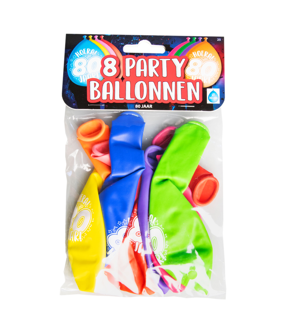Op zoek naar de perfecte decoratie voor de 80e verjaardag van een geliefde? Onze set van 8 latex ballonnen in verschillende kleuren is precies wat je zoekt! Elke ballon is bedrukt met het cijfer 80 in het wit, wat het extra feestelijk maakt. De ballonnen zijn gemaakt van hoogwaardig latexmateriaal en hebben een diameter van 30 cm, waardoor ze geschikt zijn voor zowel binnen- als buitengebruik. De verschillende kleuren ballonnen zorgen voor een vrolijke uitstraling en maken het feest compleet.