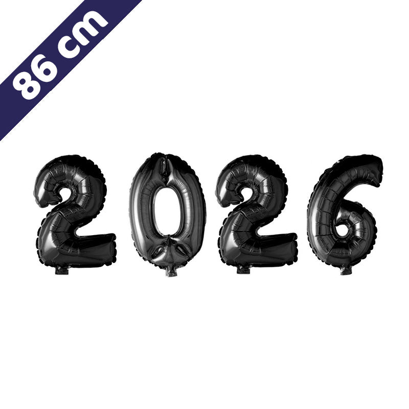 Maak een groots statement bij de overgang naar het nieuwe jaar met onze set van 4 indrukwekkende zwarte cijferballonnen, elk met een royale hoogte van 86 centimeter. Deze prachtige ballonnen vormen samen het betoverende getal "2026" en tillen je nieuwjaarsviering naar een hoger niveau met hun glanzende zwarte uitstraling.