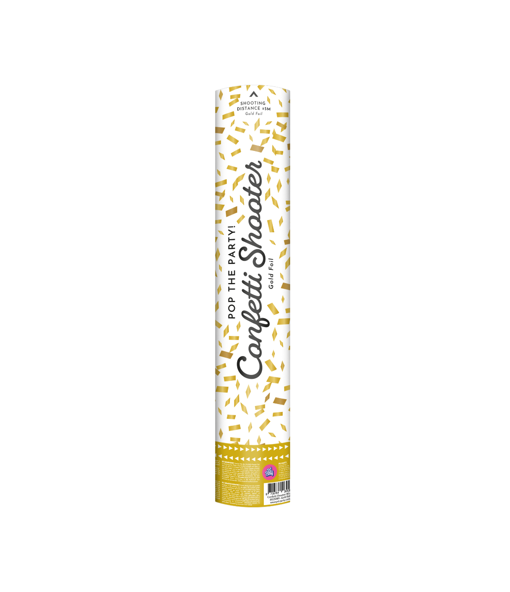 Breng een explosie van vreugde in elke feestelijke gelegenheid met ons Confetti shooter van 40 centimeter groot! Of het nu een verjaardagsfeest, jubileum, bruiloft of nieuwjaarsviering is, dit krachtige confetti shooter voegt een onvergetelijk element van plezier en opwinding toe aan elk evenement. Dit kanon bevat goud metallic confetti.
