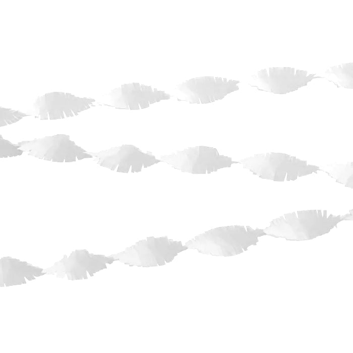 Deze prachtige witte crepeslinger is perfect voor het versieren van je feestelijke gelegenheden! De slinger is maar liefst 6 meter lang en bestaat uit dunne stroken crepepapier die zorgvuldig zijn samengevoegd. De witte kleur van de slinger voegt een chique en feestelijke uitstraling toe aan elke gelegenheid, zoals bruiloften, verjaardagsfeesten, jubilea, en nog veel meer. Met deze crepeslinger kun je elke ruimte omtoveren in een prachtige feestlocatie.
