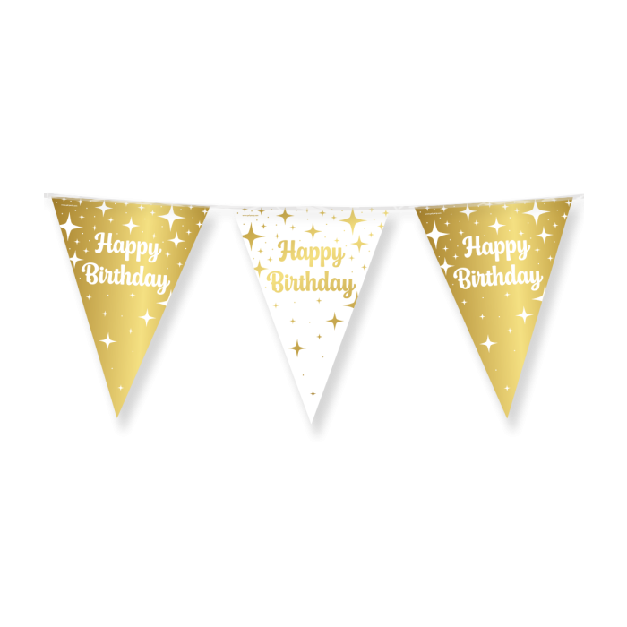 Happy Birthday Vlaggenlijn - 10 meter - goud en wit
