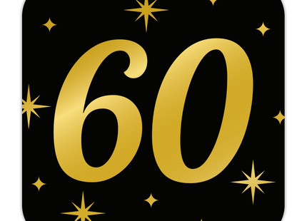 Vier zes decennia van levenswijsheid, herinneringen en liefde met ons "60" Huldeschild van 50 bij 50 centimeter, ontworpen in stijlvolle zwart-gouden kleuren! Dit huldeschild is de perfecte manier om het diamanten jubileum te markeren en het bereiken van 60 jaar te vieren in pure elegantie en klasse. Of het nu gaat om een stijlvol diamanten jubileumfeest, een intiem samenzijn, of een grootschalige viering, dit "60" Huldeschild zal de jarige laten stralen en de prachtige mijlpaal in het leven vol vertrouwen laten omarmen. Maak van deze bijzondere verjaardag een onvergetelijke herinnering en bestel vandaag nog ons stijlvolle huldeschild om het diamanten jubileum te vieren!