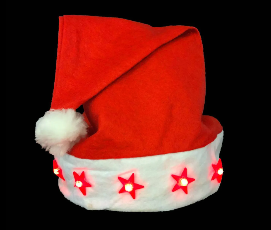 Verspreid Kerstvreugde met Onze Feestelijke Kerstmuts voorzien van LED verlichting! Deze klassieke kerstmuts is de perfecte toevoeging aan je kerstoutfit of decoraties tijdens de feestdagen. Onze kerstmuts is gemaakt van zachte en pluizige stof en heeft de traditionele rode kleur met een witte rand. De muts is voorzien van een pompon bovenop voor die extra vrolijke uitstraling. De rode sterren maken de kerstmuts af en geven een mooi knipperend licht effect. Of je nu van plan bent om de kerstman te spelen, je feestoutfit compleet te maken of gewoon wat extra kerstsfeer aan je huis toe te voegen, onze Kerstmuts is de ideale keuze. Het past zowel volwassenen als kinderen en is comfortabel om te dragen.