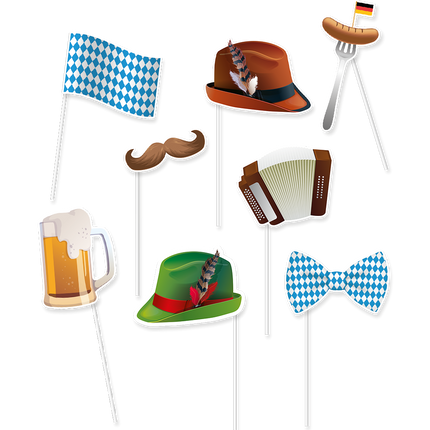 Maak je oktoberfest-feest compleet met deze set van 8 photobooth props! De set bevat een mix van verschillende accessoires die perfect zijn voor het maken van onvergetelijke foto’s. De props zijn gemaakt van stevig karton en hebben elk een uniek ontwerp in het oktoberfest-thema. De props zijn makkelijk vast te houden door het houten stokje aan de achterkant. De set wordt geleverd in een handige verpakking, zodat je ze gemakkelijk kunt opbergen en gebruiken voor het volgende feest. Met deze photobooth props zorg je voor hilarische momenten op jouw oktoberfestfeest en maak je foto’s die je nooit meer zult vergeten!