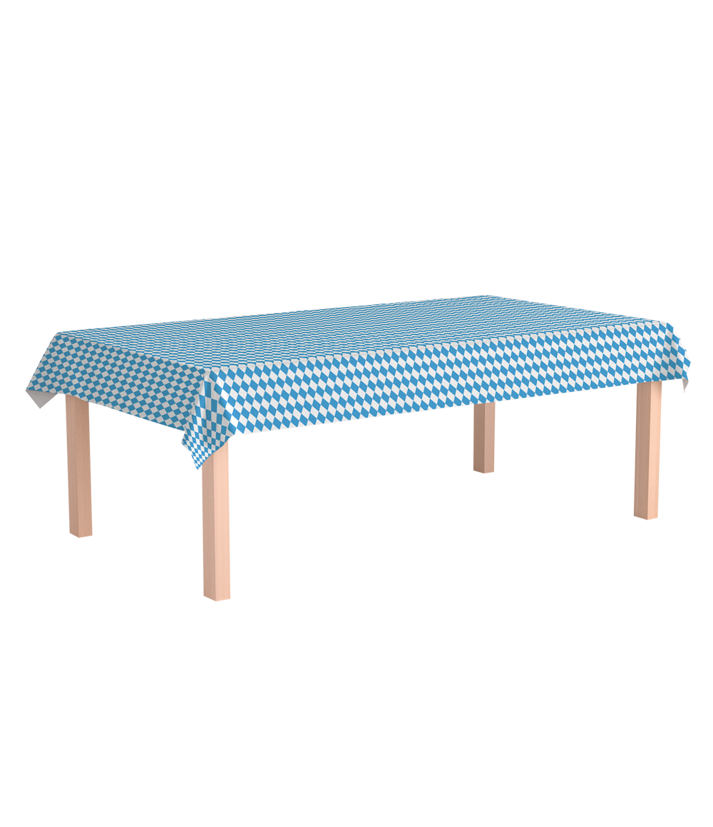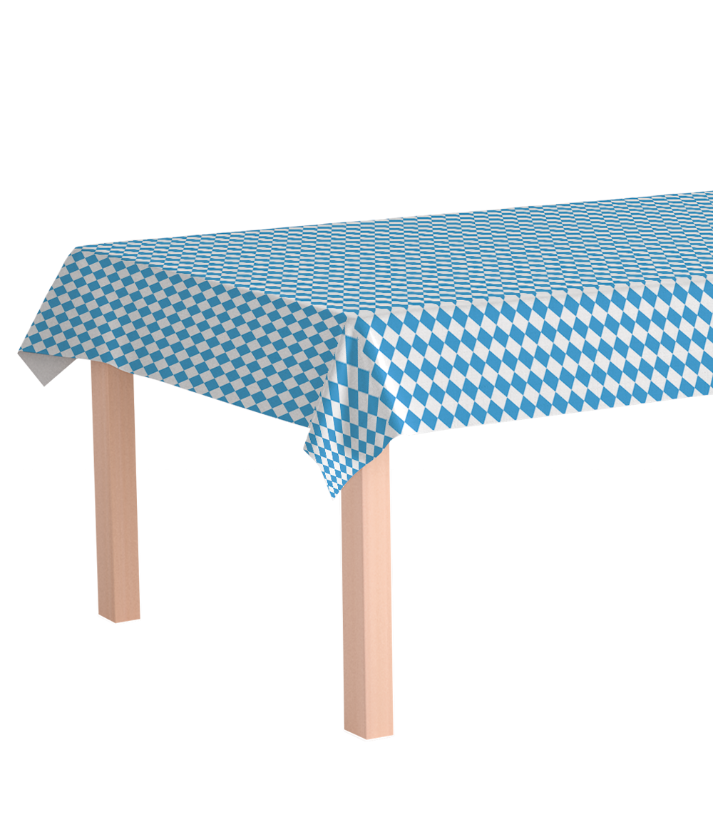 Ons tafelkleed is ontworpen met het kenmerkende patroon van de Beierse vlag, met de witte en blauwe ruiten. Het brengt de sfeer van het echte Oktoberfest naar jouw feestlocatie, of je nu thuis, in de tuin, of op een andere locatie viert. De kenmerkende blauw witte Oktoberfest kleuren zijn onmisbaar voor een Oktoberfest feestje!