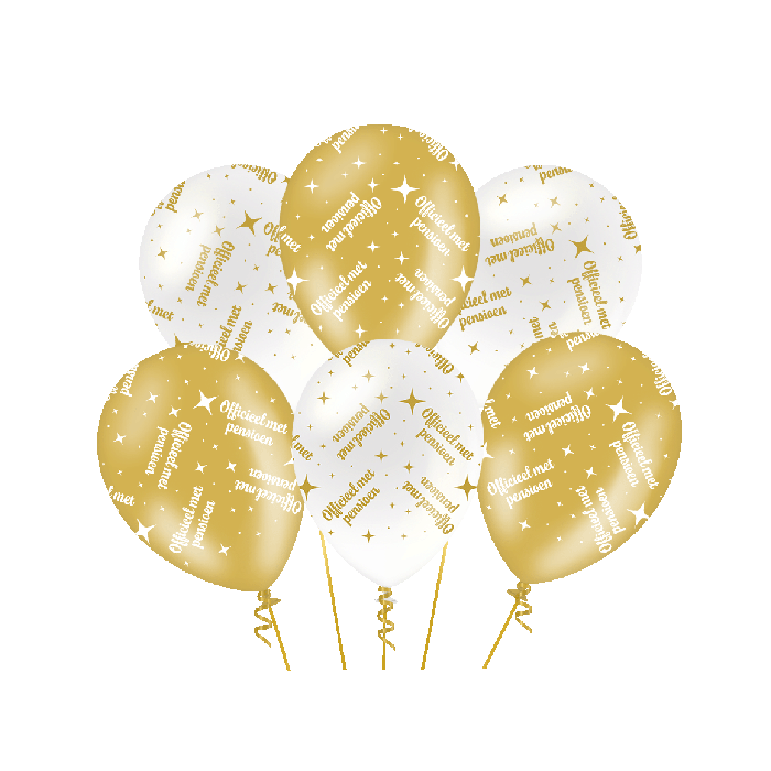 Pensioen Ballonnen - 6 stuks - 30 cm - goud en wit