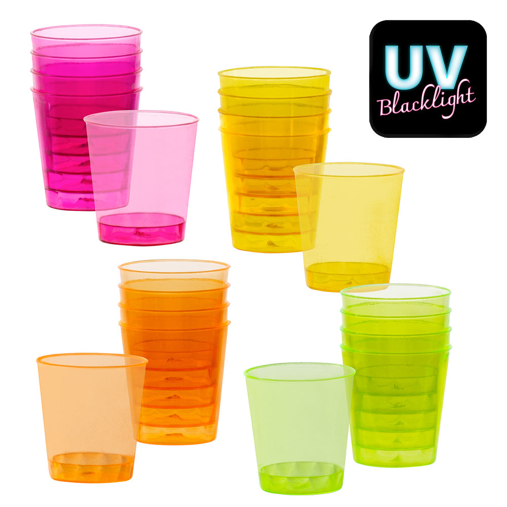 Plastic shotglaasjes - 20 stuks - 4 neon kleuren