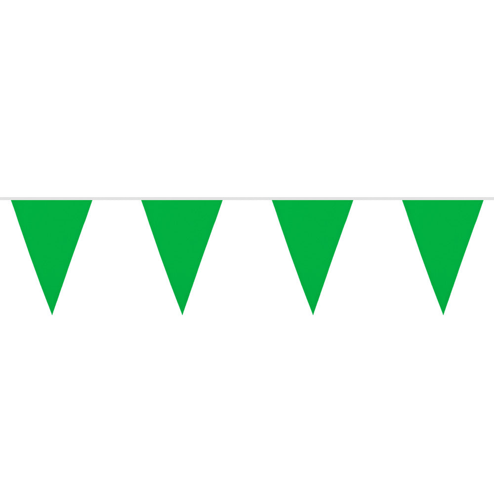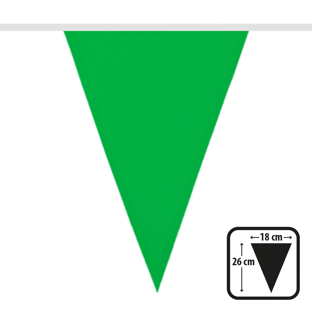 Deze groene vlaggenlijn is de perfecte aanvulling op uw feest, festival of andere evenement. De vlaggenlijn is 6 meter lang. Het is gemaakt van hoogwaardig 100% polyester en is daardoor zowel binnen als buiten geschikt. De groene kleur zorgt voor een frisse uitstraling en zet uw evenement in een positief daglicht. De vlaggenlijn is eenvoudig te bevestigen en te verplaatsen, wat het perfect maakt voor elk type evenement.