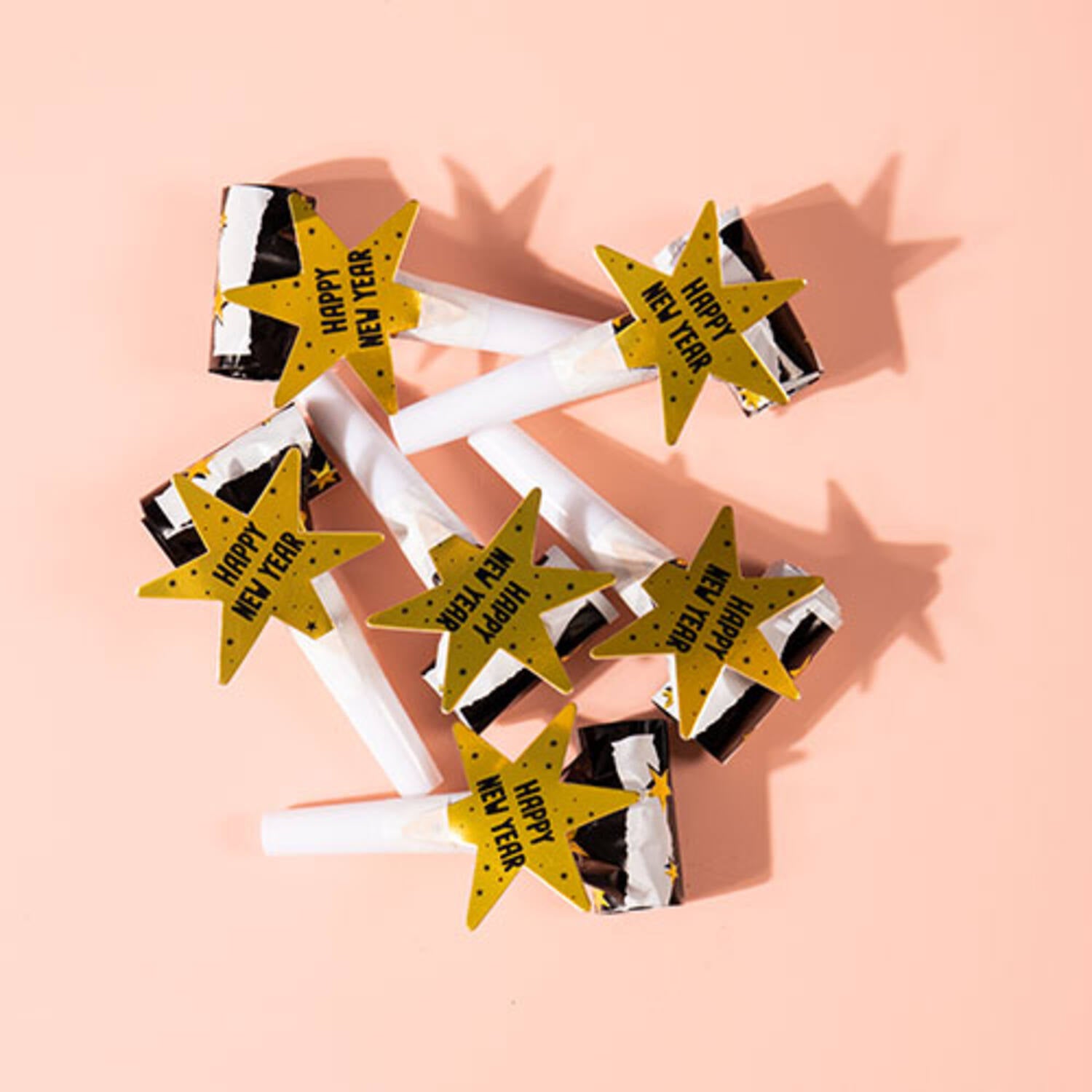Elke roltong in de set is voorzien van levendige kleuren en sprankelende "Happy New Year"-opdrukken die de feeststemming direct verhogen. Met hun handige formaat zijn deze roltongen perfect om uit te delen aan vrienden, familie en gasten om samen het nieuwe jaar in stijl te begroeten.