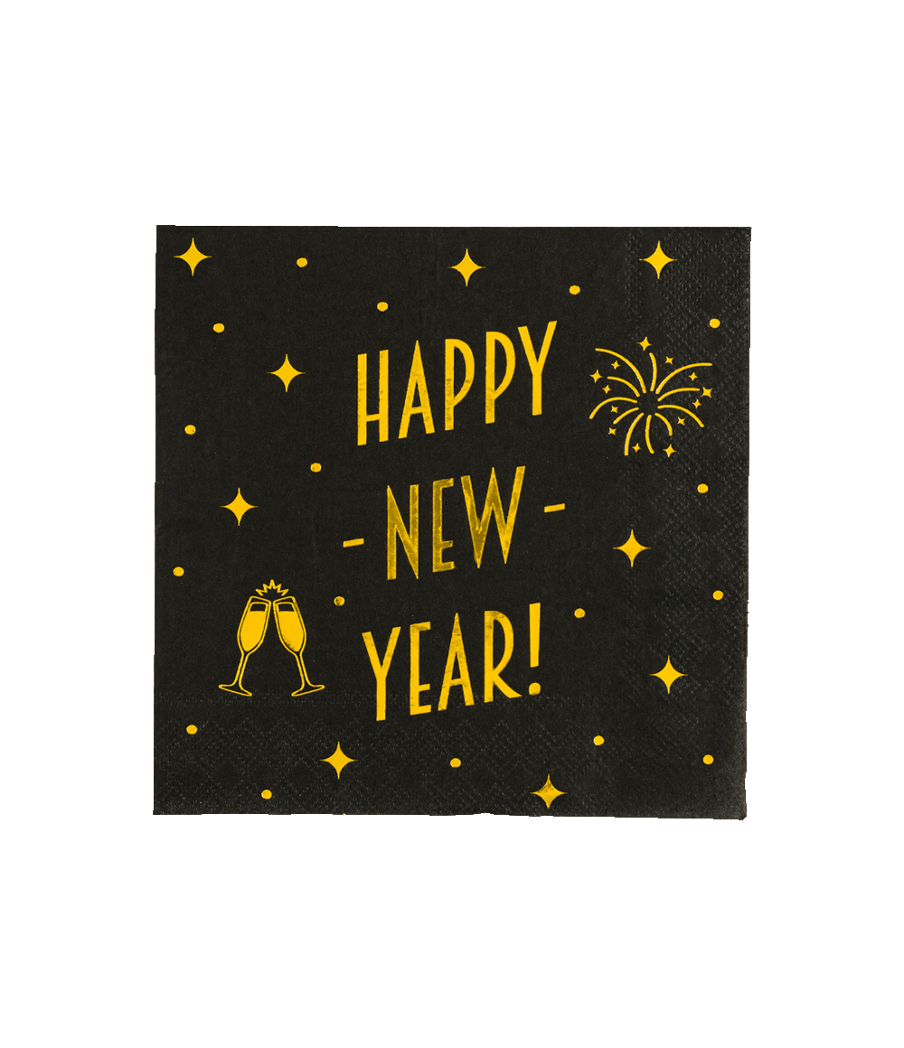 Servetten Happy New Year - 16 stuks - goud en zwart - Classy