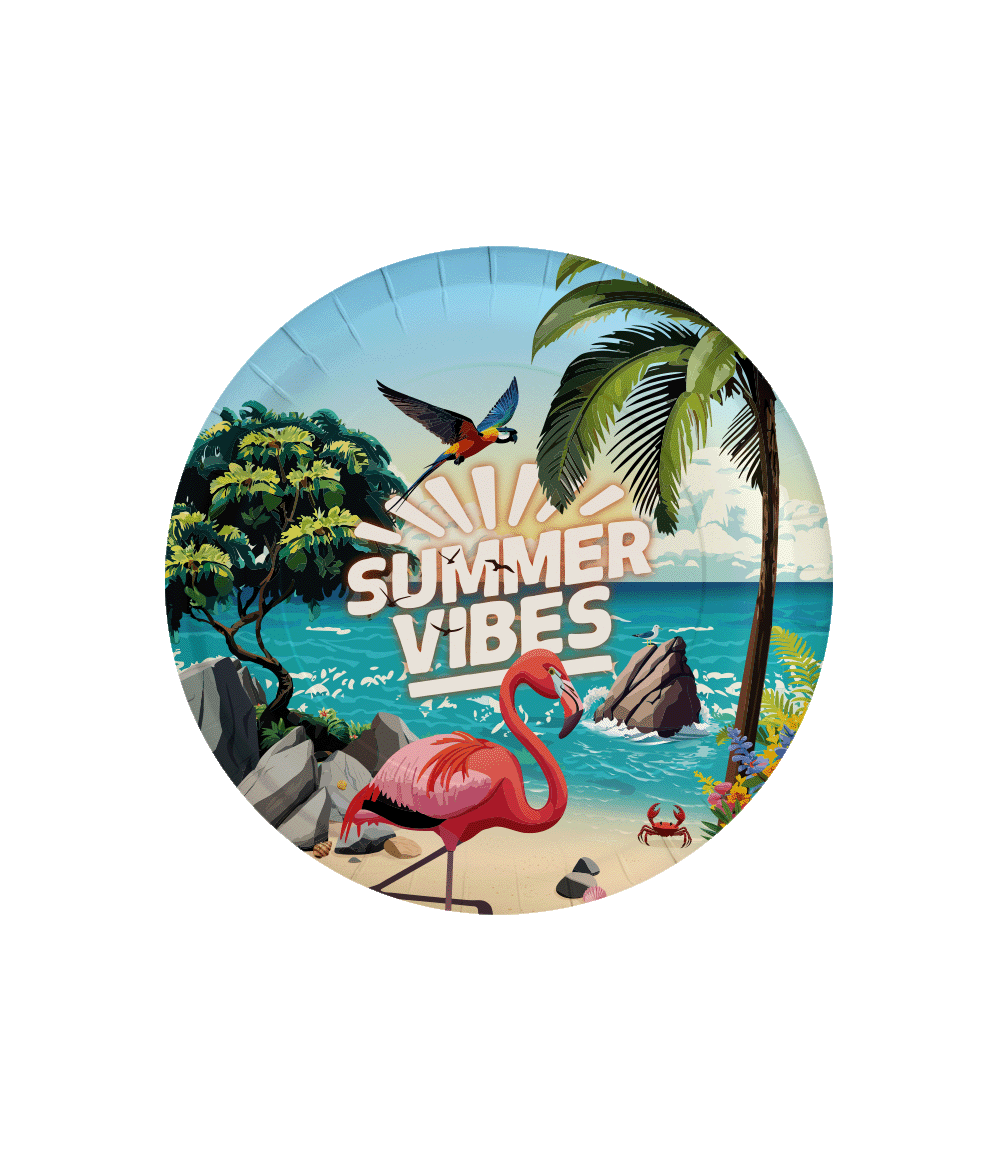 Deze papieren bordjes zijn niet alleen een blikvanger, maar ook praktisch in gebruik. Ze zijn stevig genoeg voor allerlei hapjes, van taart en snacks tot zomerse salades. Dankzij het wegwerpdesign heb je na afloop geen afwas, waardoor je meer tijd hebt om te genieten van je feest. Combineer de bordjes met bijpassende bekers, servetten en decoraties in Summer Vibes stijl voor een harmonieus geheel.