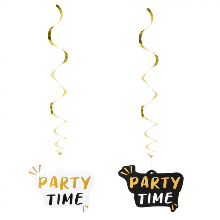 Deze swirl slingers zijn perfect voor verjaardagsfeestjes, jubilea, afstudeerfeesten, vrijgezellenfeesten en nog veel meer! Ze voegen een vleugje feestvreugde toe aan elke gelegenheid en zorgen ervoor dat je gasten zich helemaal in feeststemming voelen. Onze “Party Time” swirl slingers zijn gemaakt van hoogwaardig materiaal en zijn duurzaam genoeg om hergebruikt te worden voor toekomstige feesten. Bestel vandaag nog deze set van 2 swirl slingers en laat je feestje sprankelen en glinsteren!