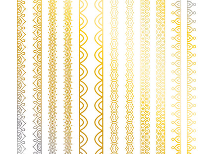De set bevat 12 langwerpige strookjes met verschillende vormen en ontwerpen. Kies gewoon de tattoo die bij je stemming en outfit past en breng hem eenvoudig aan met water. Ze zijn gemakkelijk aan te brengen en te verwijderen, waardoor je eindeloos kunt experimenteren met je tijdelijke inked look.