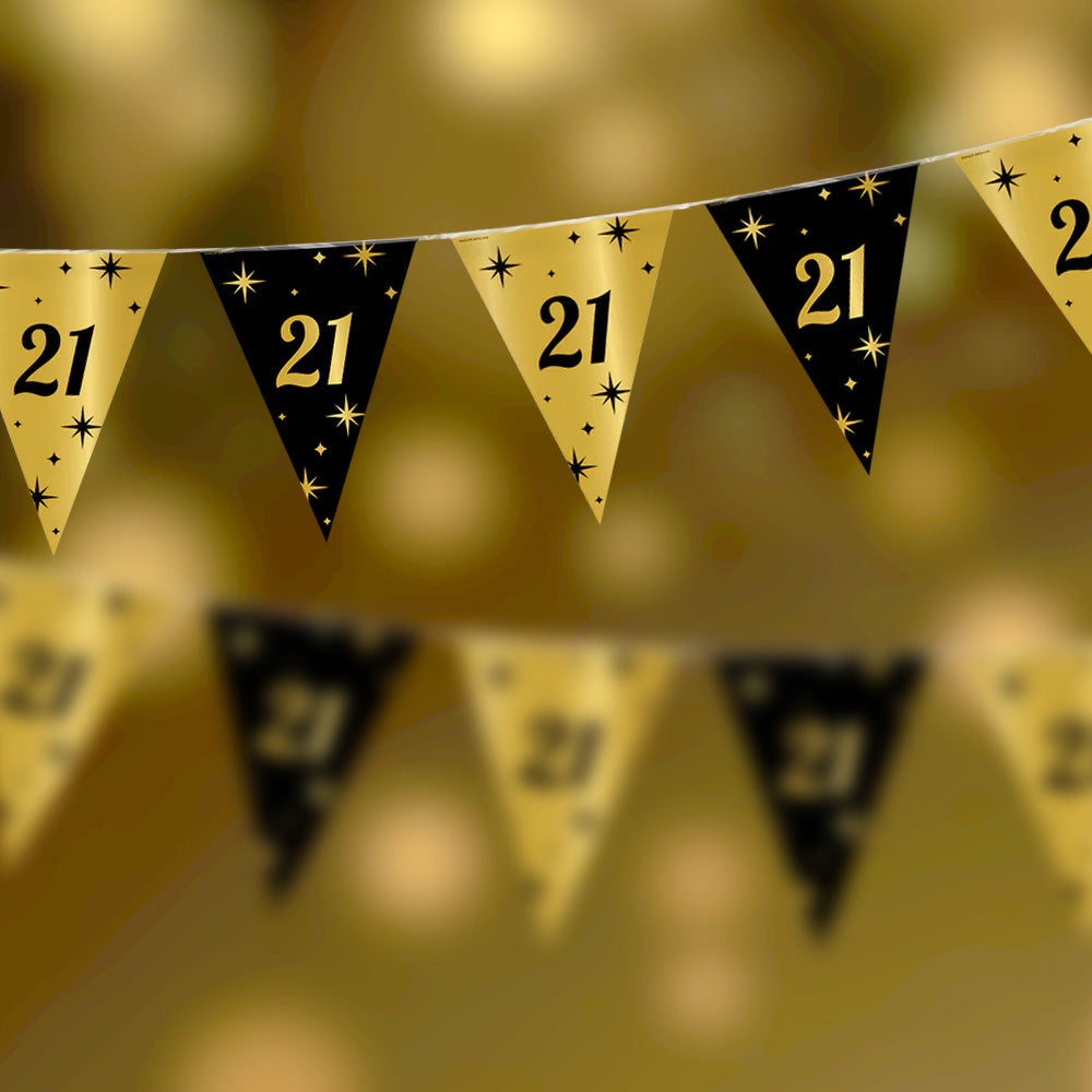 Onze vlaggenlijn is gemaakt van duurzaam materiaal en bestaat uit een reeks vlaggetjes bedrukt met het cijfer 21. De vlaggenlijn is gemakkelijk op te hangen en is geschikt voor zowel binnen als buiten gebruik.