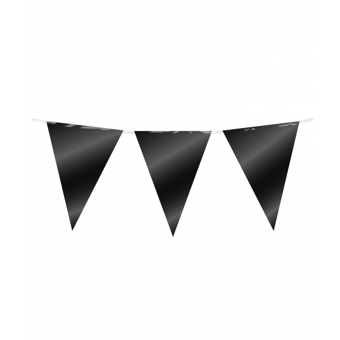 Voeg een vleugje zwart toe aan je feest met onze sprankelende zwarte vlaggenlijn! Deze 10 meter lange vlaggenlijn is perfect voor elke feestelijke gelegenheid. Gemaakt van hoogwaardig glinsterend zwartkleurig materiaal, creëert het een luxueuze en feestelijke sfeer. Gemakkelijk op te hangen en aan te passen aan elke gewenste lengte. Transformeer elke ruimte in een betoverende omgeving. Voeg wat glamour toe aan je feesten met onze zwarte vlaggenlijn!