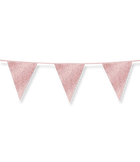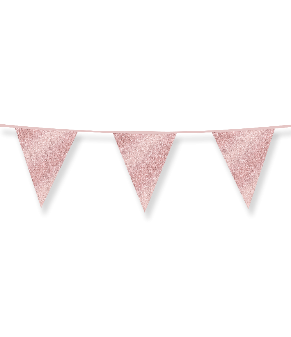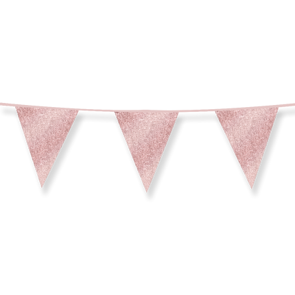 Roségouden glitter vlaggenlijn. De vlaggenlijn is 6 meter lang. Afmeting vlaggetje 16 x 20 cm