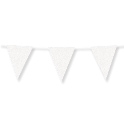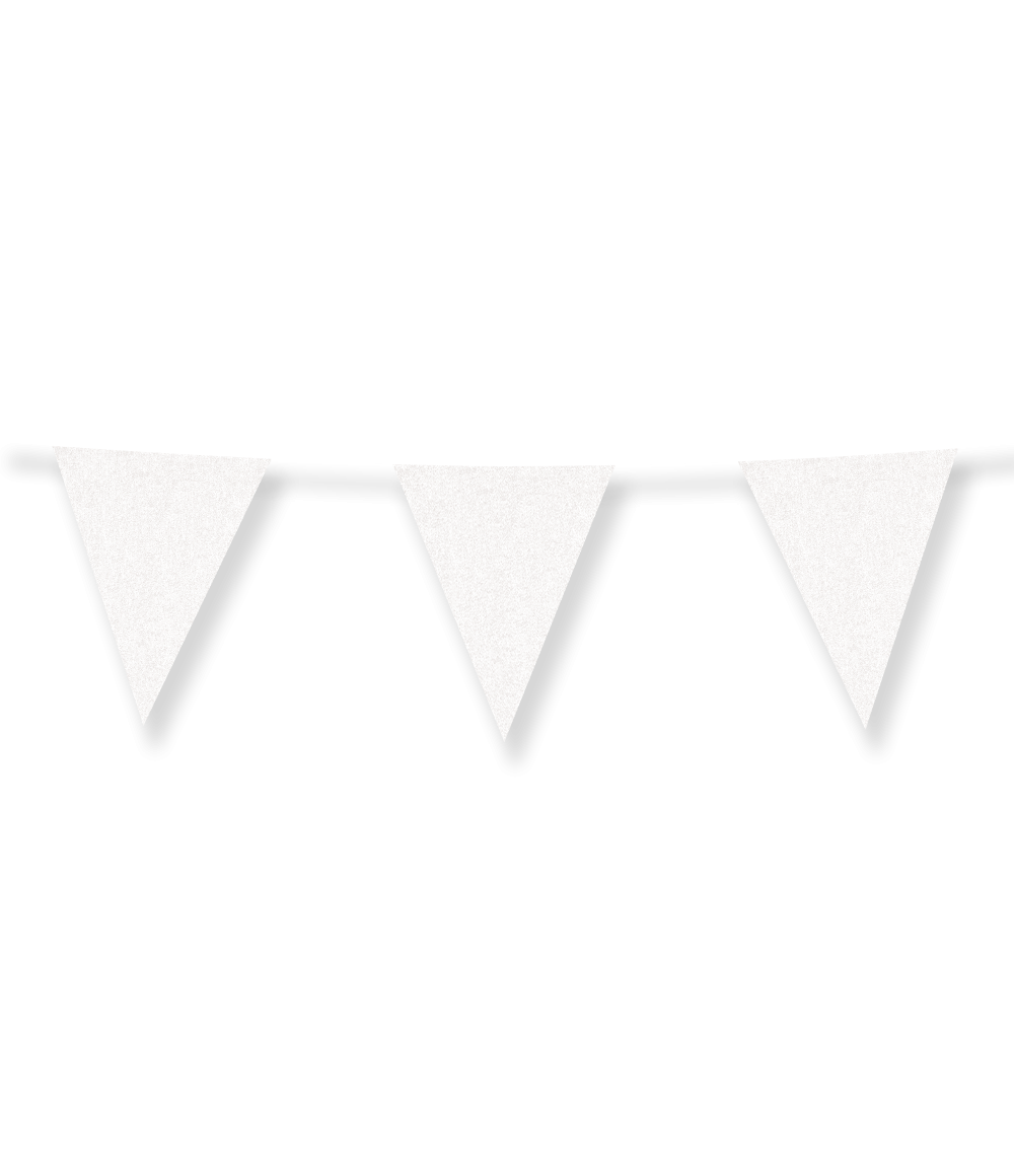 Witte glitter vlaggenlijn van 6 meter lang. Afmeting vlaggetje 16 x 20 cm
